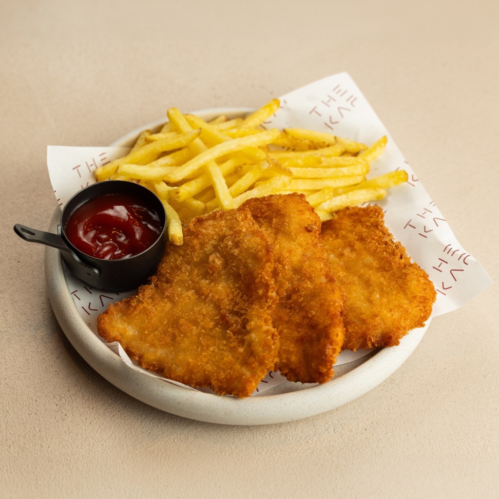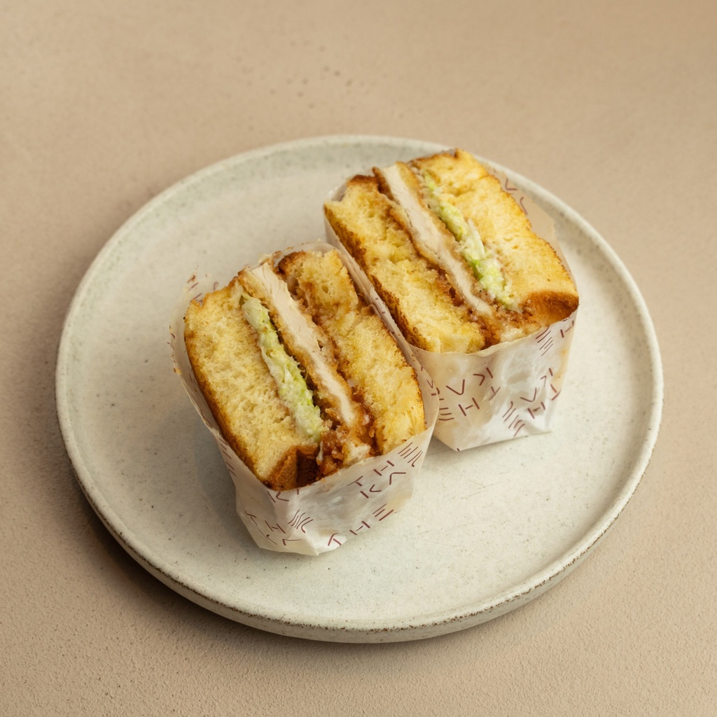 Chicken katsu with katsu aioli and slaw, served on toasted brioche loaf